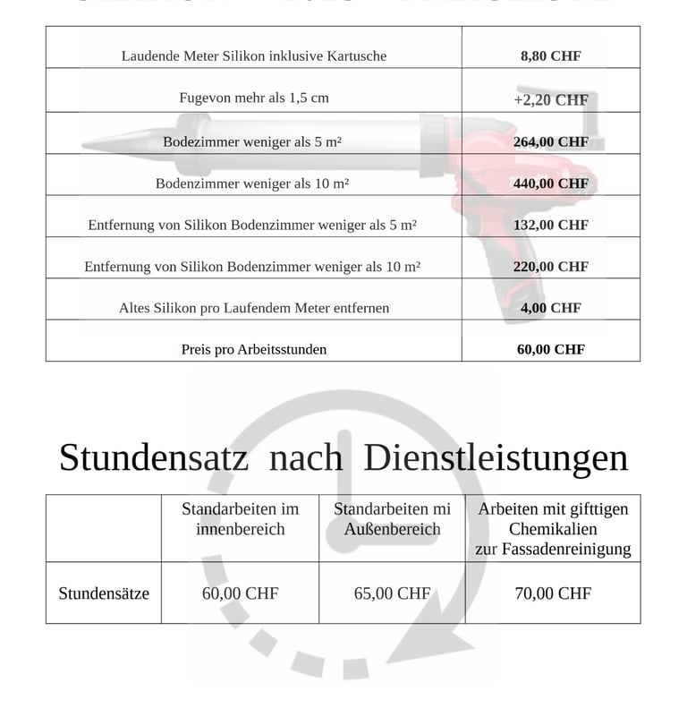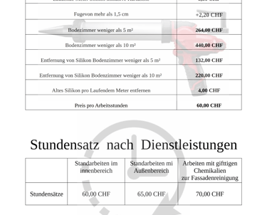 Dieser Preis dient nur als Richtwert und ist nicht endgültig. Er soll dem Kunden eine Vorstellung von den tatsächlichen Kosten des Dienstes geben, muss jedoch aus verschiedenen Gründen individuell an jeden Kunden angepasst werden.Aus diesem Grund solte ein unverbindlicher Besuch organisiert werden, um ein genaues Angebot für den Dienst zu erstellen. Ich hoffe, diese informationen sind hilfreich für Sie, und zögern Sie bitte nicht, uns für einen geplanten Besuch zu kontaktieren.